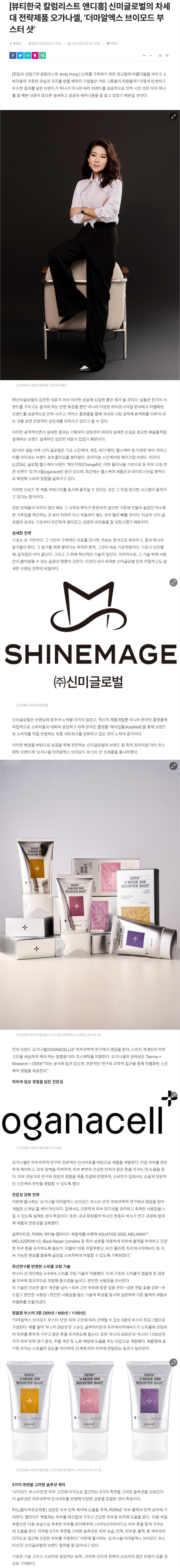 [뷰티한국 칼럼리스트 앤디홍] 신미글로벌의 차세대 전략제품 오가나셀, ‘더마알엑스 브이모드 부스터 샷’ 최고관리자 2025-09-24 최고관리자 0 194 09.24 10:38 기사 원문: https://www.beautyhankook.com/news/articleView.html?idxno=78698